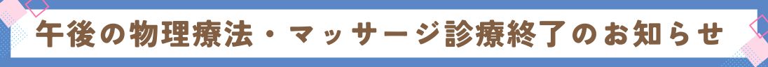 - 午後の物理療法・マッサージ診療終了のお知らせ